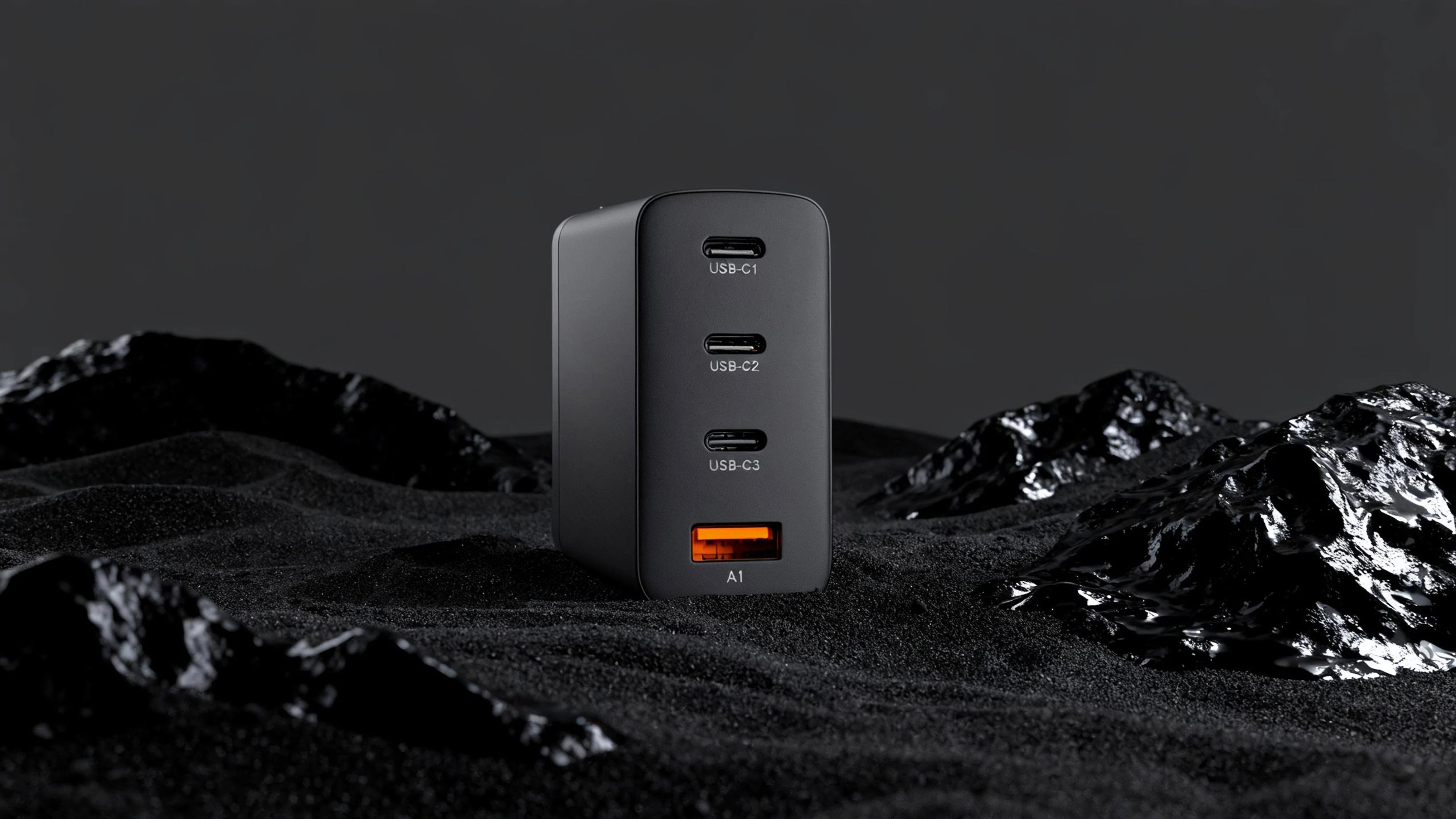 Charge up quickly with the 100W charger featuring three USB-C and one USB-A port, perfect for powering multiple devices simultaneously.